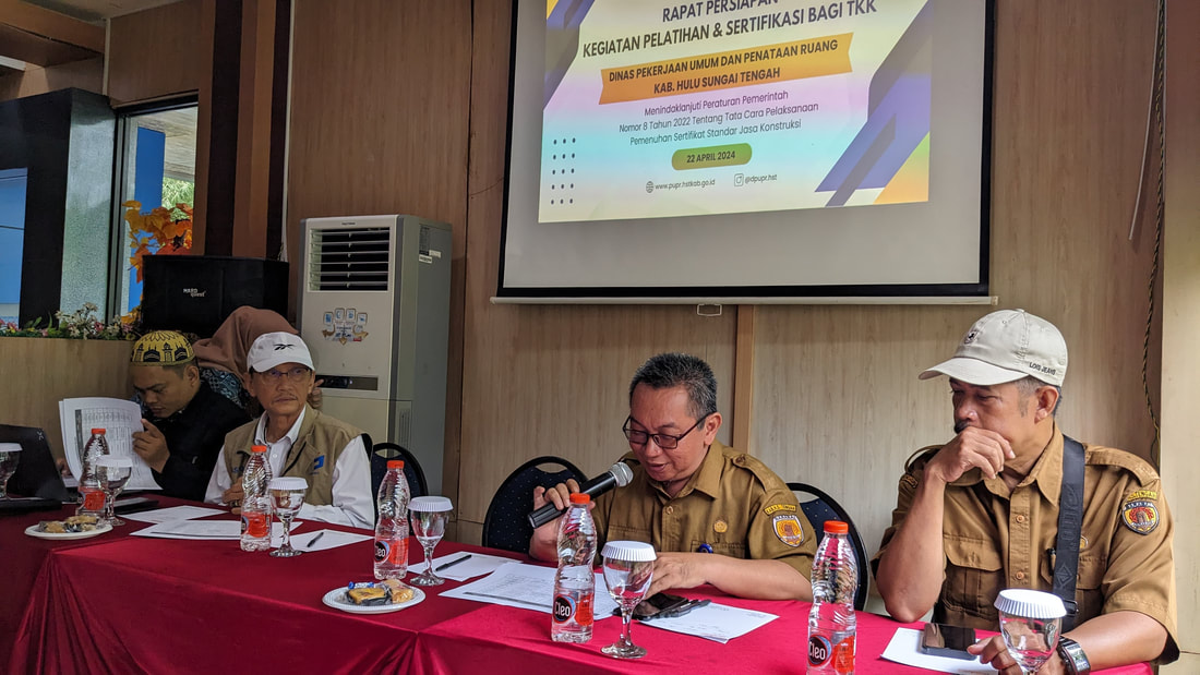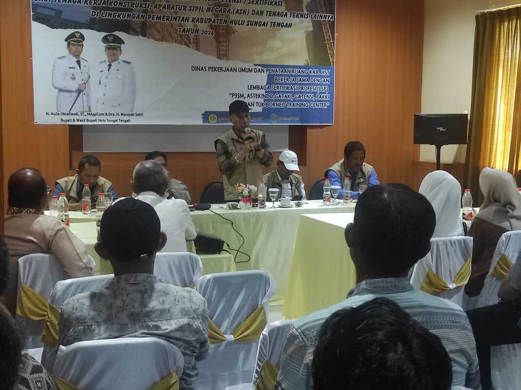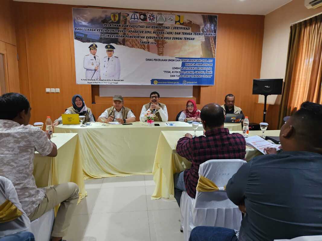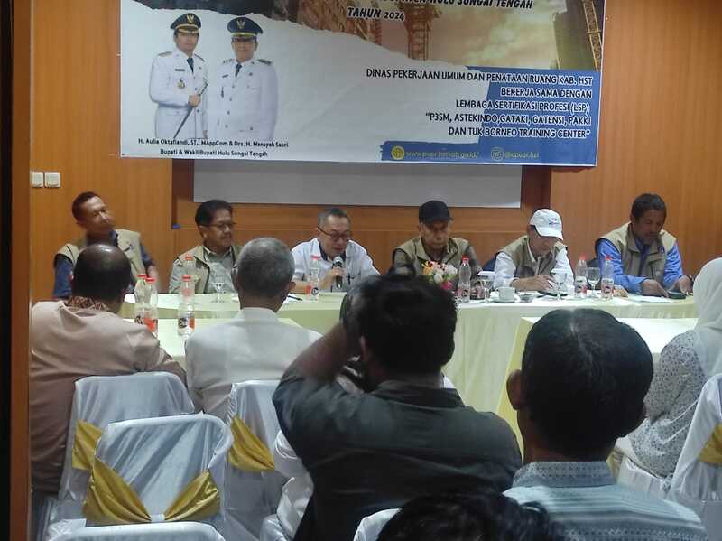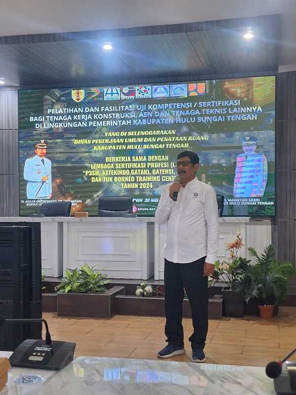 Sosialisasi mengenai materi kegiatan Uji Asesment dan pembekalan seputar materi yang akan diujikan, bertempat di Hotel Madani Kabupaten Hulu Sungai Tengah Kota Barabai dengan dihadiri 45 orang peserta baik dari kontraktor, konsultan dan masyarakat Umum. 20 s/d 22 Mei 2024